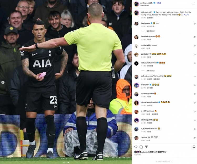 10月5日的消息,《每日邮报》报道称,英足总目前正在对热刺的两名球员在与利兹联的比赛中的不当事件进行调查。在这场以2-1获胜的比赛中,热刺球员波罗在罚角球时,不幸被从观众席上扔下来的电子烟击中。而在库杜斯打入制胜球后庆祝时,也有一个瓶子飞过他的脸旁。