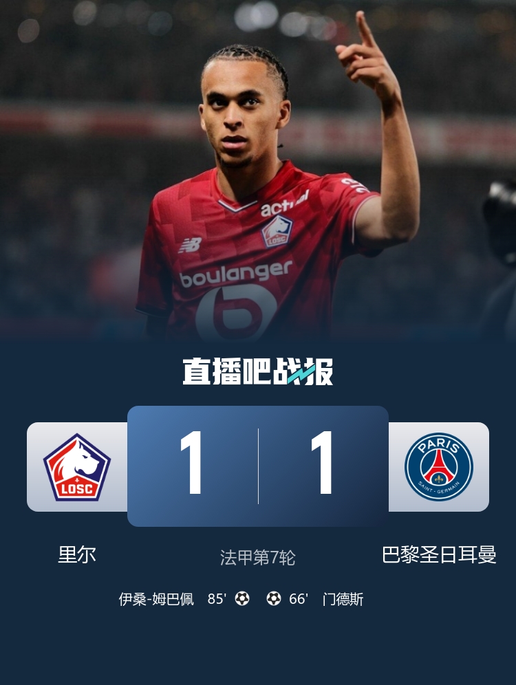 在比赛的关键时刻 巴黎与里尔艰难握手言和 伊桑-姆巴佩为兄弟现场助威扳平比分_法甲直播