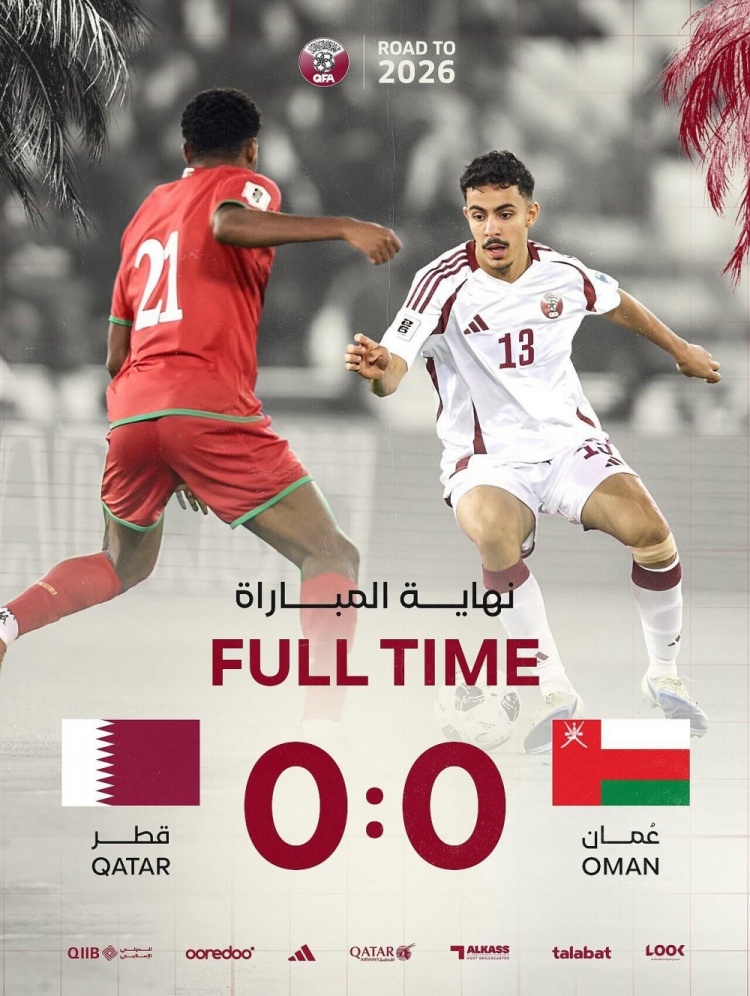 世预赛阿曼与卡塔尔交锋胶着双方0比0互交白卷卡塔尔控球率高达七成但射门乏力仅有两次射正_世界杯直播