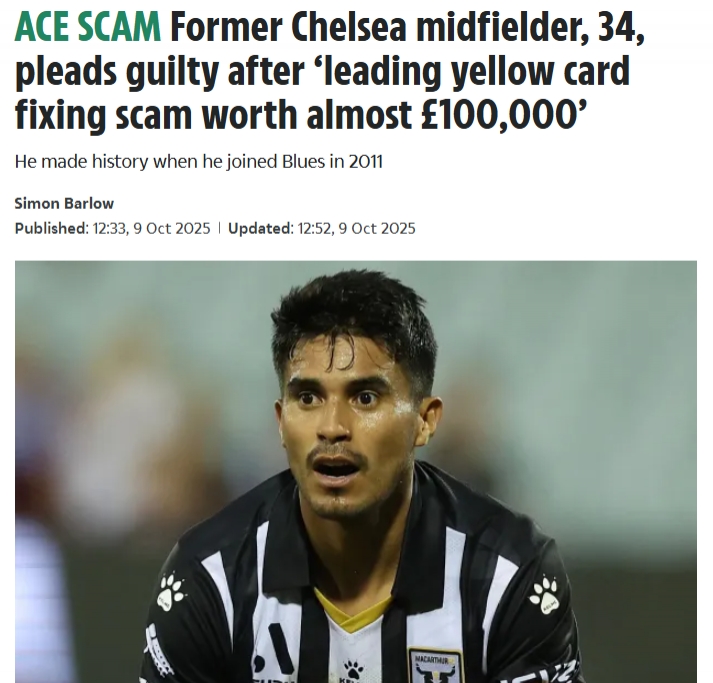 前切尔西中场承认参与澳超假球事件 涉及获利十万英镑并给队友5000英镑_英超直播